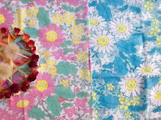 セリアの手ぬぐい ピンクとブルーの可愛い花畑柄 暮らしニスタ